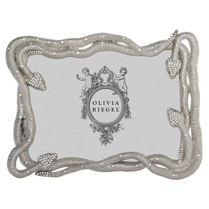 Celebrate the wisdom and mystery of the 2025 year of the snake with this chic silver or gold finished pewter serpent patterned picture frame. Encrusted with hand-set clear pavé European crystals and emerald green crystal eyes. Elegant moiré silk back, with easel for vertical or horizontal placement. Tarnish resistant. Signature luxury gift box included.