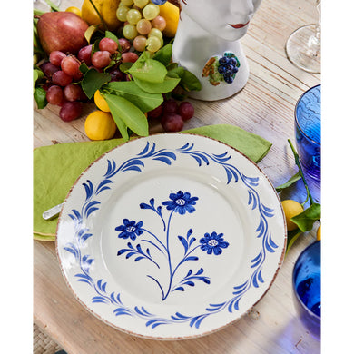 Casa Nuno Blue & White/Pink & White/Green & White Dinner Plate, 3 Flowers/Vines, Set of 2