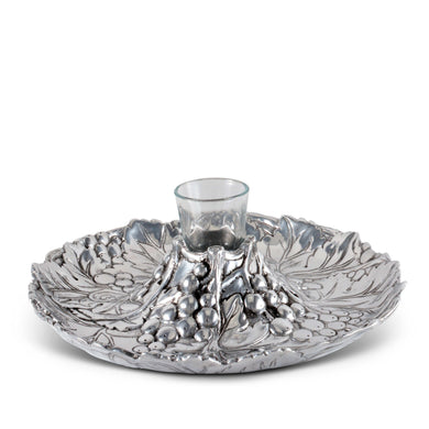 Set the scene for effortless elegance with Arthur Court’s exquisitely designed 14” round chip and dip tray. Inspired by the sun-drenched olive groves of the Mediterranean, this piece features beautifully sculpted olive branches laden with fruit and leaves, creating a sense of rustic sophistication. At the heart of the tray, a permanent dip bowl—perfectly sized to hold up to 8 ounces of your favorite dip, salsa, or sauce—makes entertaining easy and stylish. The timeless olive motif blends seamlessly with a variety of serving pieces, while also shining as an integral piece of the Arthur Court Olive collection.