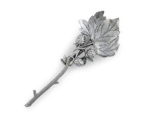 Experience the elegance of Vagabond House's Blackberry Serving Spoon. Perfectly sculpted in luxury-grade pewter, this serving spoon embodies the intertwining beauty of blackberry vines that richly decorate the handle, seamlessly combining creativity with versatility. The impressive design also features a generous 11" long by 4.5" wide leaf head, ensuring you can serve your delicious dishes in style. Indulge in this unique present for women with a taste for high-end versatile cutlery, a true luxury gift for home chefs who appreciate artful kitchen utensils.