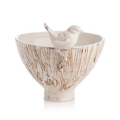 White Ceramic Bowl/Cachepot/Centerpiece with Birds