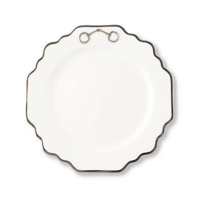 Pewter Bit Bone China Scallop Salad / Dessert Plate Platinum Rim