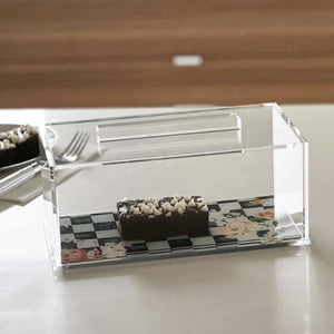 - Chic checkered lucite cake tray with lid | modern dessert display