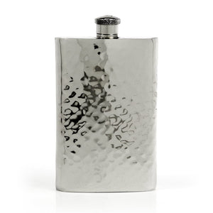 Its hand-hammered finish reflects the disciplined metalworking traditions of earlier generations, while the substantial 9-ounce capacity and balanced weight in hand bring the design firmly into the present. Each flask is expertly crafted from 22-gauge solid pewter and finished using the signature SuperPolish™ process, creating a luminous surface that radiates quiet sophistication without unnecessary ornament.