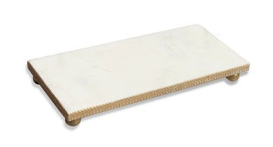 White Marble Oblong Tray with Gold Beaded Edge – 14" x 6"