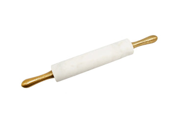 White Marble Rolling Pin with Hammered Gold Handles & Base – 18”