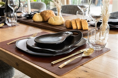 Appetizer Side Plate / Spoon Rest – Organic Ceramic in Black Matte (Set of 4)