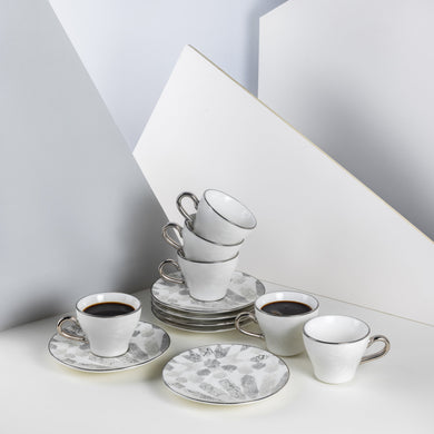 Each cup and saucer is meticulously crafted to reflect the heritage of Middle Eastern coffee culture, blending intricate detailing with modern elegance. Thoughtful in design and generous in size, this complete 12-piece set ensures you are always ready to host with sophistication and warmth.