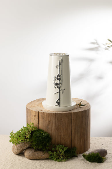 Liqa'a - Small Lantern Candle Holder - Pearl White & Silver