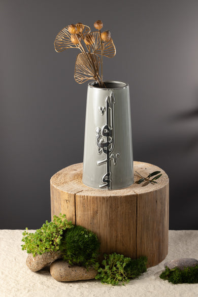 Liqa'a - Large Decorative Vase - Grey & Silver