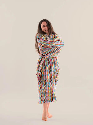 Our Pom Pom style plush robe brings a fun, vibrant style to your stay-at-home vibes.