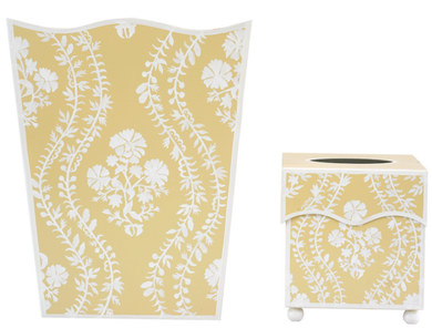 Butter Yellow Floral Trellis Wastepaper Basket & Tissue | Elegant Bath Décor