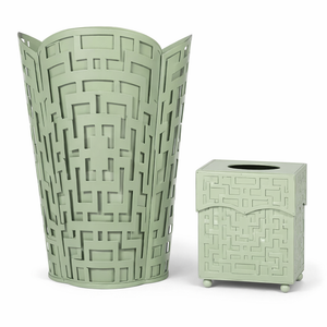 Dark Celadon Fretwork Wastepaper Basket & Tissue Holder (3 Options) | Elegant Bath Décor