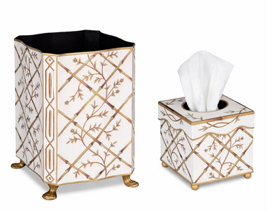 Ivory Bamboo & Floral Tissue Holder & Wastepaper Basket | Elegant Bath Décor