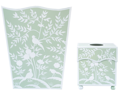 Green Bird & Vine Wastepaper Basket & Tissue | Botanical Bath Décor